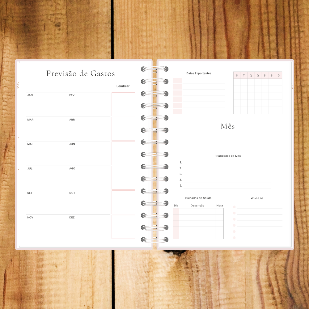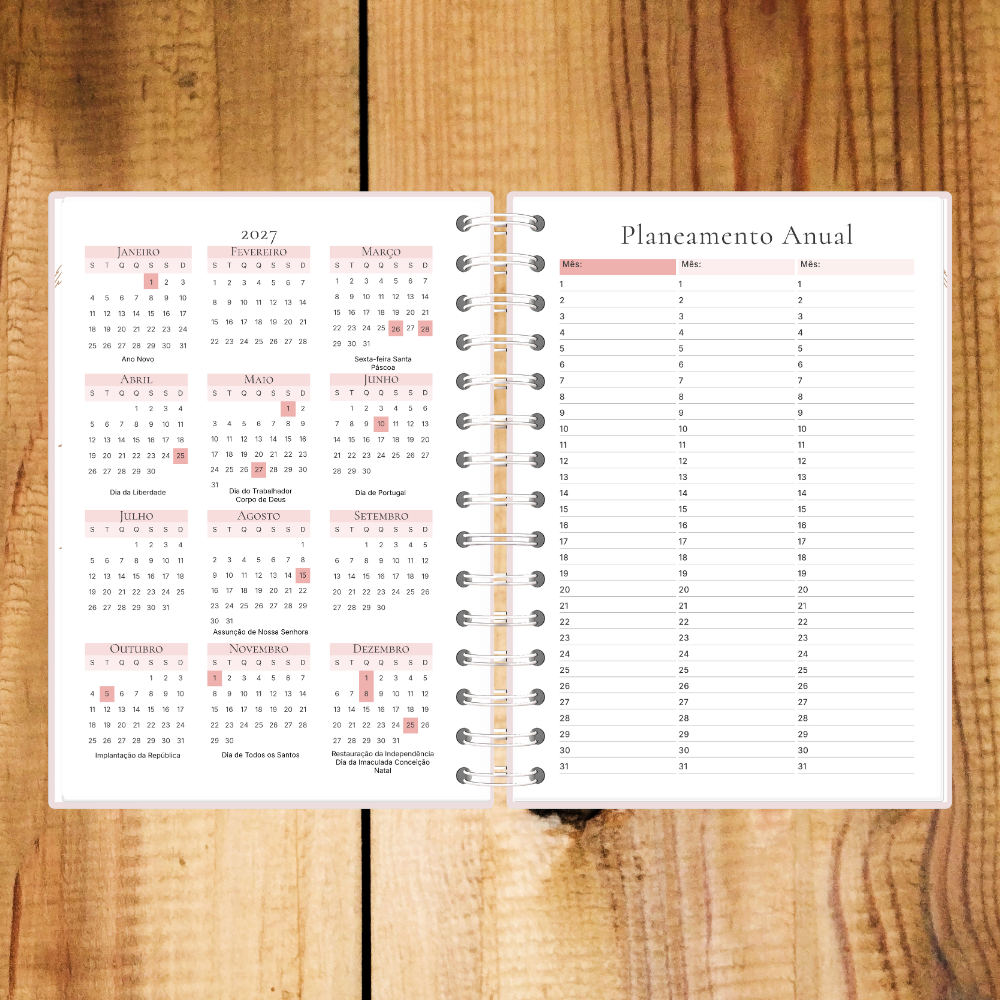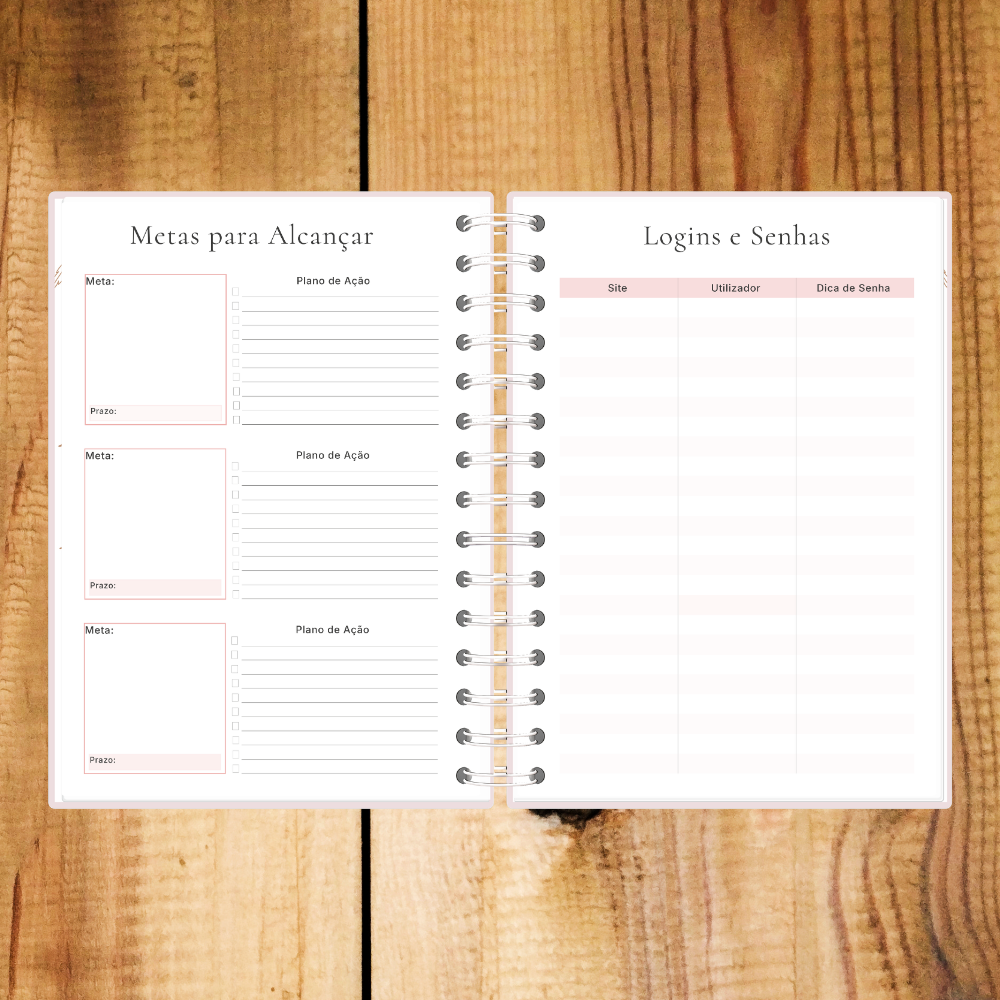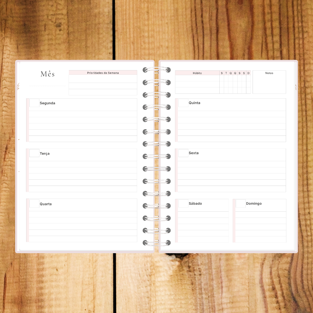 Agenda semanal sem data perfeita para quem procura flexibilidade e um toque delicado na organização. Personalizável com nome, adapta-se ao teu ritmo sem desperdício de páginas.