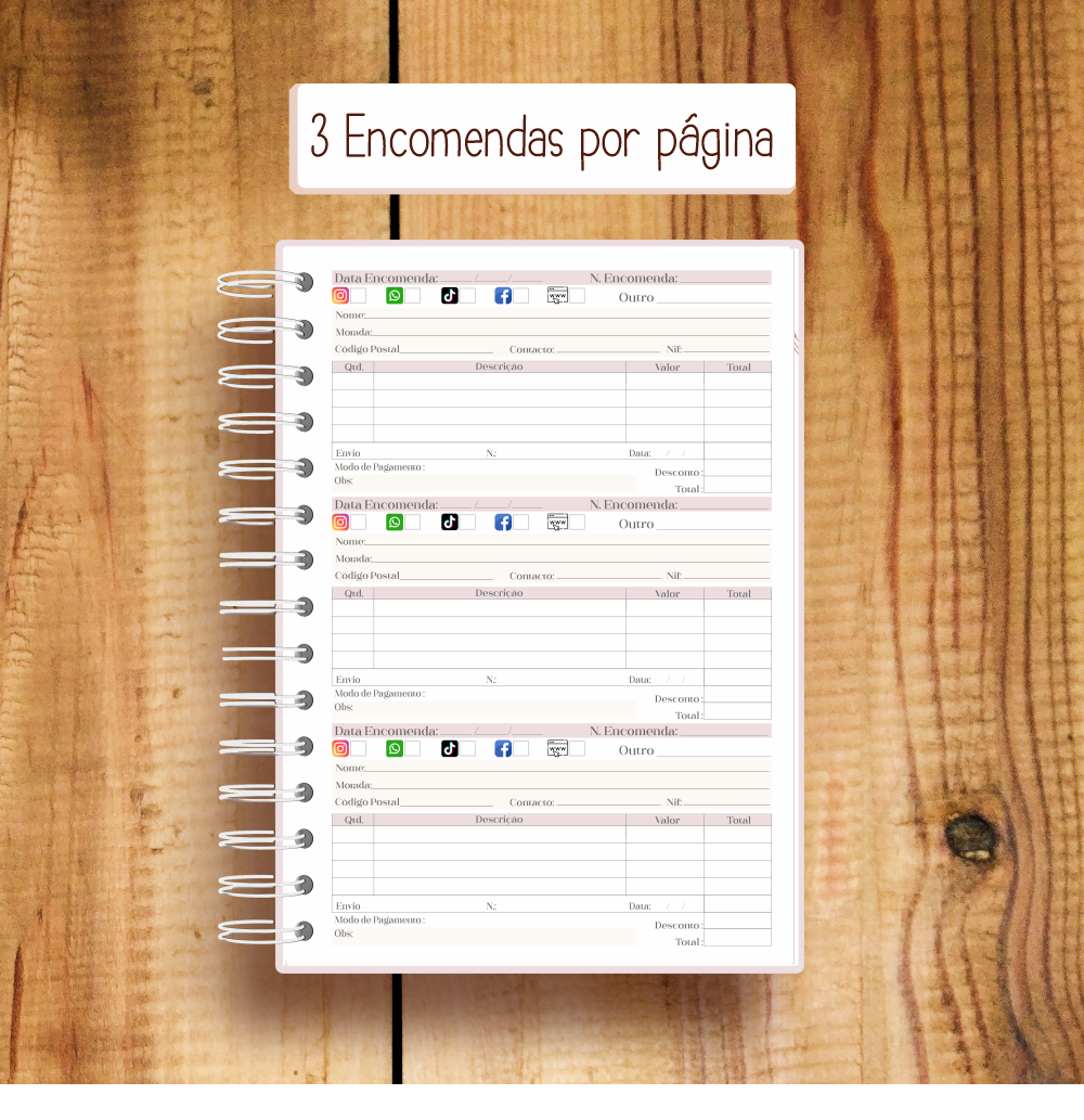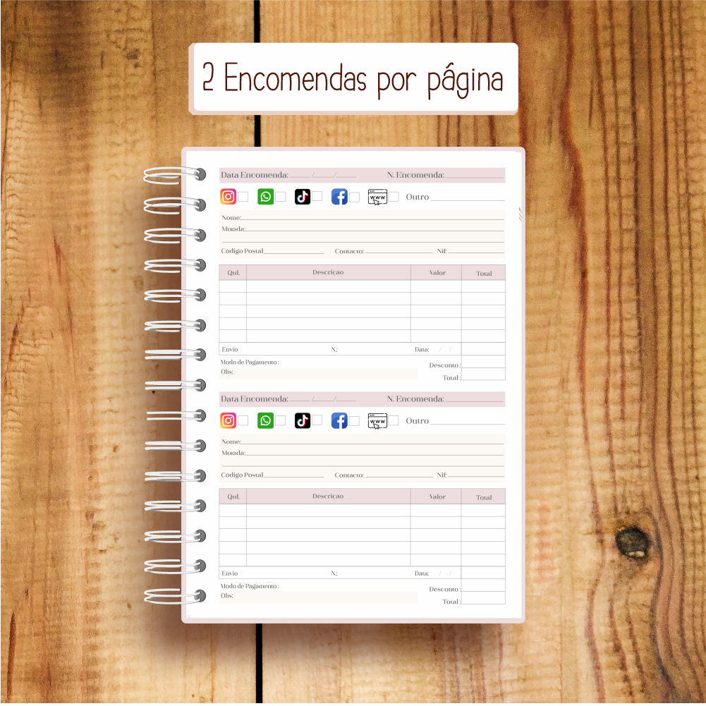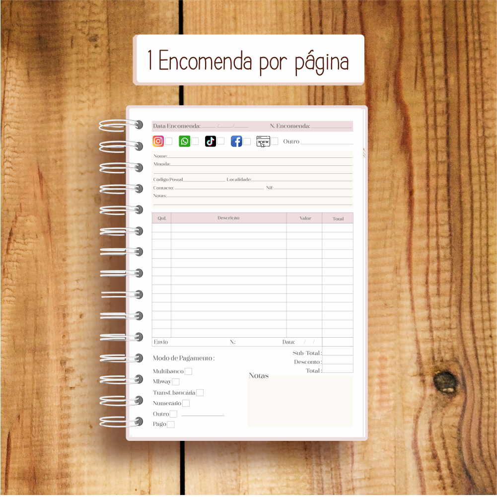Com uma estrutura clara e materiais de qualidade, facilita a tua gestão de pedidos e comunicação com clientes.